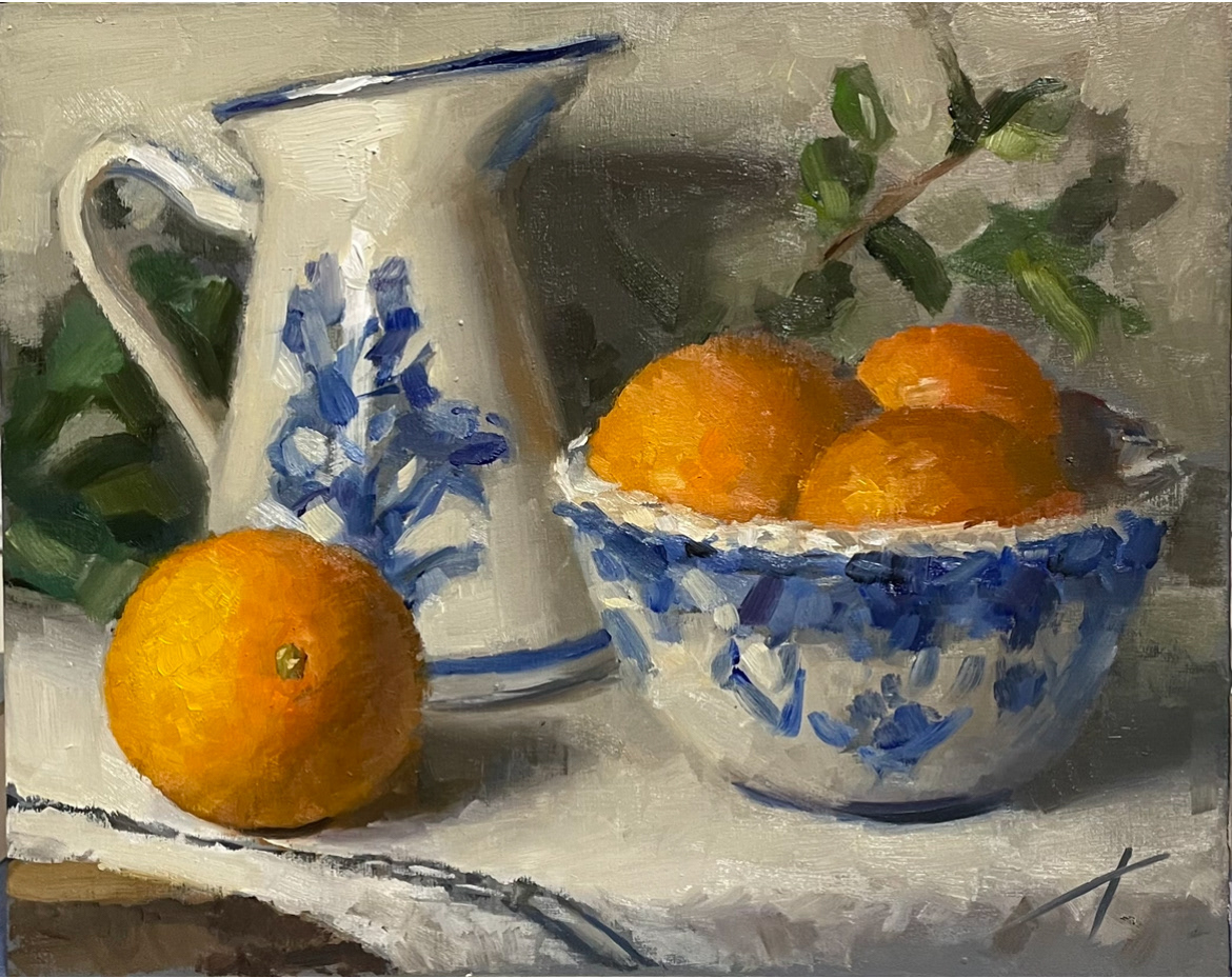 Blood Orange in Blue, oil on panel, 8"x10" Available through Brushworks Gallery
