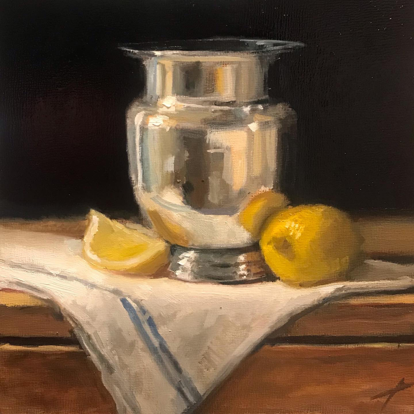 Silver and Lemons, oil on panel, 8"x8" SOLD
